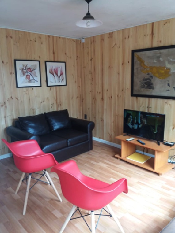 Cocina equipada completa con refrigerador, cocina con horno, microondas, hervidor, licuadora, vajilla, etc.