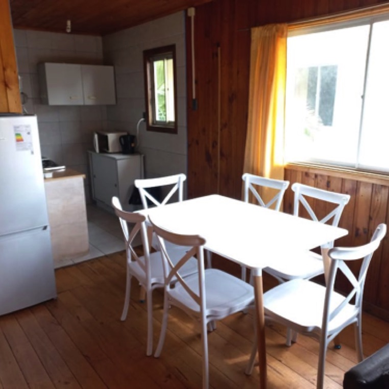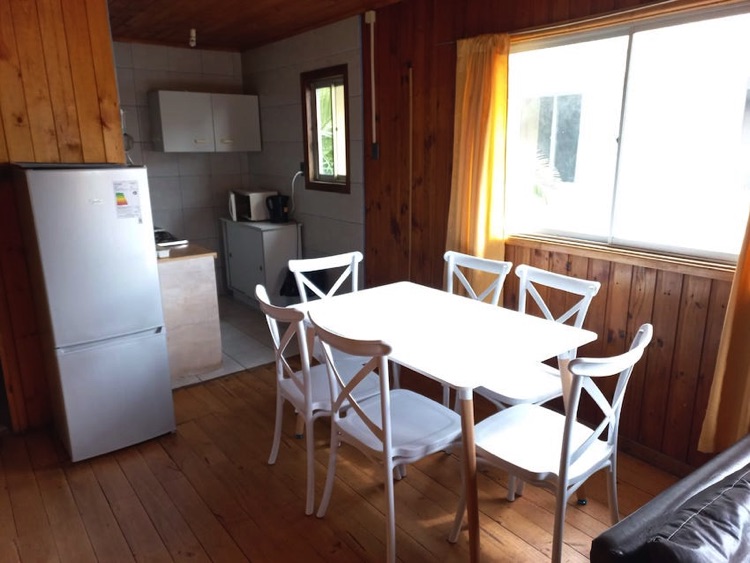 Cocina equipada completa con refrigerador, cocina con horno, microondas, hervidor, licuadora, vajilla, etc.